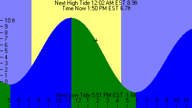 Local Tide predictions Merrimack River Entrance, Massachusetts (2) Portland, Maine + Corrections: High(+0:20 *0.91) Low(+0:24 *0.91) Units are feet Monday 2022-01-03 Sunrise 7:14 AM EST, Sunset 4:21 PM EST Moonrise 8:23 AM EST, Moonset 5:19 PM EST Low Tide: 5:04 AM EST -0.4 High Tide: 11:17 AM EST 10.5 Low Tide: 5:51 PM EST -1.6 Tuesday 2022-01-04 Sunrise 7:14 AM EST, Sunset 4:22 PM EST Moonrise 9:11 AM EST, Moonset 6:37 PM EST High Tide: 12:02 AM EST 8.9 Low Tide: 5:59 AM EST -0.4 High Tide: 12:11 PM EST 10.4 Low Tide: 6:44 PM EST -1.5 Wednesday 2022-01-05 Sunrise 7:14 AM EST, Sunset 4:23 PM EST Moonrise 9:48 AM EST, Moonset 7:54 PM EST High Tide: 12:56 AM EST 8.8 Low Tide: 6:54 AM EST -0.3 High Tide: 1:06 PM EST 10.1 Low Tide: 7:37 PM EST -1.3 Thursday 2022-01-06 Sunrise 7:13 AM EST, Sunset 4:24 PM EST Moonrise 10:17 AM EST, Moonset 9:08 PM EST High Tide: 1:51 AM EST 8.8 Low Tide: 7:50 AM EST -0.1 High Tide: 2:02 PM EST 9.7 Low Tide: 8:31 PM EST -0.9 Friday 2022-01-07 Sunrise 7:13 AM EST, Sunset 4:25 PM EST Moonrise 10:43 AM EST, Moonset 10:17 PM EST High Tide: 2:45 AM EST 8.6 Low Tide: 8:48 AM EST 0.2 High Tide: 2:58 PM EST 9.1 Low Tide: 9:24 PM EST -0.4 Saturday 2022-01-08 Sunrise 7:13 AM EST, Sunset 4:26 PM EST Moonrise 11:05 AM EST, Moonset 11:24 PM EST High Tide: 3:41 AM EST 8.5 Low Tide: 9:48 AM EST 0.5 High Tide: 3:57 PM EST 8.5 Low Tide: 10:19 PM EST 0.1 Sunday 2022-01-09 First Quarter Moon Sunrise 7:13 AM EST, Sunset 4:27 PM EST Moonrise 11:26 AM EST, Moonset 12:28 AM EST High Tide: 4:36 AM EST 8.3 Low Tide: 10:50 AM EST 0.7 High Tide: 4:57 PM EST 8.0 Low Tide: 11:14 PM EST 0.6 Monday 2022-01-10 Sunrise 7:13 AM EST, Sunset 4:28 PM EST Moonset 12:28 AM EST, Moonrise 11:47 AM EST High Tide: 5:32 AM EST 8.2 Low Tide: 11:52 AM EST 0.8 High Tide: 5:59 PM EST 7.6 Tuesday 2022-01-11 Sunrise 7:12 AM EST, Sunset 4:30 PM EST Moonset 1:31 AM EST, Moonrise 12:09 PM EST Low Tide: 12:10 AM EST 0.9 High Tide: 6:27 AM EST 8.1 Low Tide: 12:54 PM EST 0.9 High Tide: 7:00 PM EST 7.3 Wednesday 2022-01-12 Sunrise 7:12 AM EST, Sunset 4:31 PM EST Moonset 2:34 AM EST, Moonrise 12:34 PM EST Low Tide: 1:05 AM EST 1.2 High Tide: 7:21 AM EST 8.1 Low Tide: 1:51 PM EST 0.8 High Tide: 7:58 PM EST 7.2 Thursday 2022-01-13 Sunrise 7:12 AM EST, Sunset 4:32 PM EST Moonset 3:36 AM EST, Moonrise 1:04 PM EST Low Tide: 1:58 AM EST 1.3 High Tide: 8:11 AM EST 8.2 Low Tide: 2:44 PM EST 0.6 High Tide: 8:51 PM EST 7.2 Friday 2022-01-14 Sunrise 7:11 AM EST, Sunset 4:33 PM EST Moonset 4:38 AM EST, Moonrise 1:39 PM EST Low Tide: 2:47 AM EST 1.4 High Tide: 8:58 AM EST 8.3 Low Tide: 3:31 PM EST 0.5 High Tide: 9:38 PM EST 7.3 Saturday 2022-01-15 Sunrise 7:11 AM EST, Sunset 4:34 PM EST Moonset 5:36 AM EST, Moonrise 2:22 PM EST Low Tide: 3:31 AM EST 1.3 High Tide: 9:41 AM EST 8.4 Low Tide: 4:14 PM EST 0.3 High Tide: 10:21 PM EST 7.4 Sunday 2022-01-16 Sunrise 7:10 AM EST, Sunset 4:35 PM EST Moonset 6:30 AM EST, Moonrise 3:12 PM EST Low Tide: 4:12 AM EST 1.2 High Tide: 10:21 AM EST 8.6 Low Tide: 4:53 PM EST 0.2 High Tide: 11:00 PM EST 7.5 Monday 2022-01-17 Full Moon Sunrise 7:10 AM EST, Sunset 4:37 PM EST Moonset 7:18 AM EST, Moonrise 4:10 PM EST Low Tide: 4:49 AM EST 1.1 High Tide: 10:58 AM EST 8.7 Low Tide: 5:29 PM EST 0.1 High Tide: 11:36 PM EST 7.5 Tuesday 2022-01-18 Sunrise 7:09 AM EST, Sunset 4:38 PM EST Moonset 7:58 AM EST, Moonrise 5:13 PM EST Low Tide: 5:25 AM EST 1.0 High Tide: 11:34 AM EST 8.8 Low Tide: 6:03 PM EST 0.0 Wednesday 2022-01-19 Sunrise 7:08 AM EST, Sunset 4:39 PM EST Moonset 8:32 AM EST, Moonrise 6:18 PM EST High Tide: 12:10 AM EST 7.6 Low Tide: 6:01 AM EST 0.9 High Tide: 12:09 PM EST 8.8 Low Tide: 6:36 PM EST -0.0 Thursday 2022-01-20 Sunrise 7:08 AM EST, Sunset 4:40 PM EST Moonset 9:01 AM EST, Moonrise 7:25 PM EST High Tide: 12:45 AM EST 7.7 Low Tide: 6:37 AM EST 0.8 High Tide: 12:45 PM EST 8.8 Low Tide: 7:11 PM EST -0.1 Friday 2022-01-21 Sunrise 7:07 AM EST, Sunset 4:42 PM EST Moonset 9:26 AM EST, Moonrise 8:31 PM EST High Tide: 1:20 AM EST 7.9 Low Tide: 7:16 AM EST 0.7 High Tide: 1:24 PM EST 8.8 Low Tide: 7:47 PM EST -0.1 Saturday 2022-01-22 Sunrise 7:06 AM EST, Sunset 4:43 PM EST Moonset 9:49 AM EST, Moonrise 9:39 PM EST High Tide: 1:57 AM EST 8.0 Low Tide: 7:58 AM EST 0.6 High Tide: 2:05 PM EST 8.6 Low Tide: 8:26 PM EST -0.0 Sunday 2022-01-23 Sunrise 7:06 AM EST, Sunset 4:44 PM EST Moonset 10:10 AM EST, Moonrise 10:47 PM EST High Tide: 2:37 AM EST 8.2 Low Tide: 8:44 AM EST 0.5 High Tide: 2:50 PM EST 8.4 Low Tide: 9:09 PM EST 0.1![]()